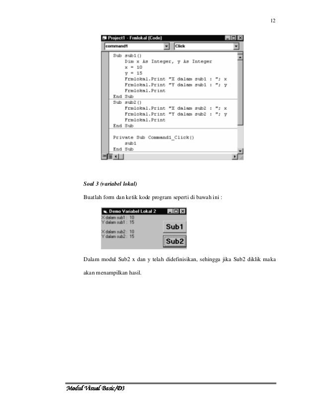 Contoh soal visual basic pilihan ganda beserta jawabannya unknown. Visual basic 6.0, yang dimaksud dengan properties di bawah ini adalah : Pada microsoft visual basic, yang dimaksud dengan metoda dibawah ini adalah : Contoh petunjuk umum pengerjaan soal kunci ujian contoh soal lots dan hots seputar covid 19model pilihan gandajumlah soal. Dimana c yang menjadi b dan c yang kedua adalah variabel yang berbeda. Visual basic 6.0, yang dimaksud dengan properties di bawah ini adalah : 1kb07 hallo sobat blogger berikut ini ada beberapa soal tentang visual basic 6 0 berseta jawabannya yang mana mungkin bisa anda dapat pelajari cekribbroot. Contoh soal pilihan ganda dan essay visual basic. Microsoft visual studio memiliki 3 edisi yakni: Yang ditampilkan pada gambat di atas adalah, secara berurutan, algoritma untuk plot nilai x dan y (langkah pertama dalam mencari rentang nilai x yang di dalamnya terdapat solusi persamaan) dan algoritma untuk menghitung akar dengan metode bisection. 1 visual basic visual basic merupakan sebuah bahasa pemrograman yang menawarkan integrated development environment (ide) visual untuk membuat program perangkat lunak/ aplikasi berbasis sistem operasi microsoft windows yang berbasis gui (grapical user interface). Contoh soal visual basic pilihan ganda beserta jawabannya. Kemampuan vb beberapa kemampuan atau manfaat dari visual basic, diantaranya: